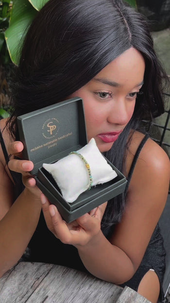 Small bracelet made from high quality gemstones combined with gold plated brass thread, resulting in beautiful and shiny colors. This bracelet is safe for daily use and no need to remove for sport activities. Suitable for all skin tones and perfect for completing your everyday look or as a gift idea, get ready to be the center of many people's attention!